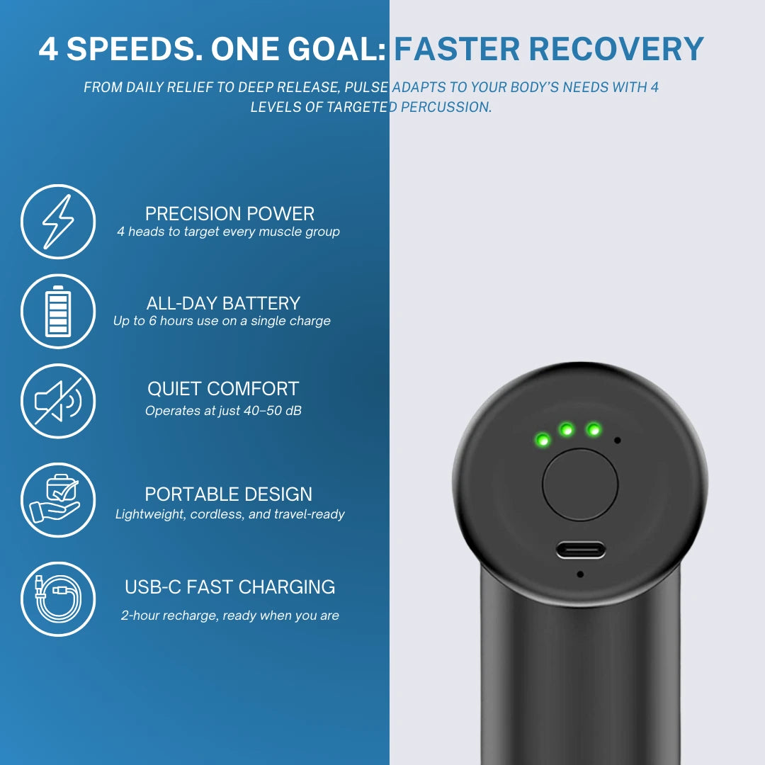Pulse delivers up to 3,200 percussions per minute with 4 adjustable speeds, letting you choose between lighter daily use or stronger intensity after activity.